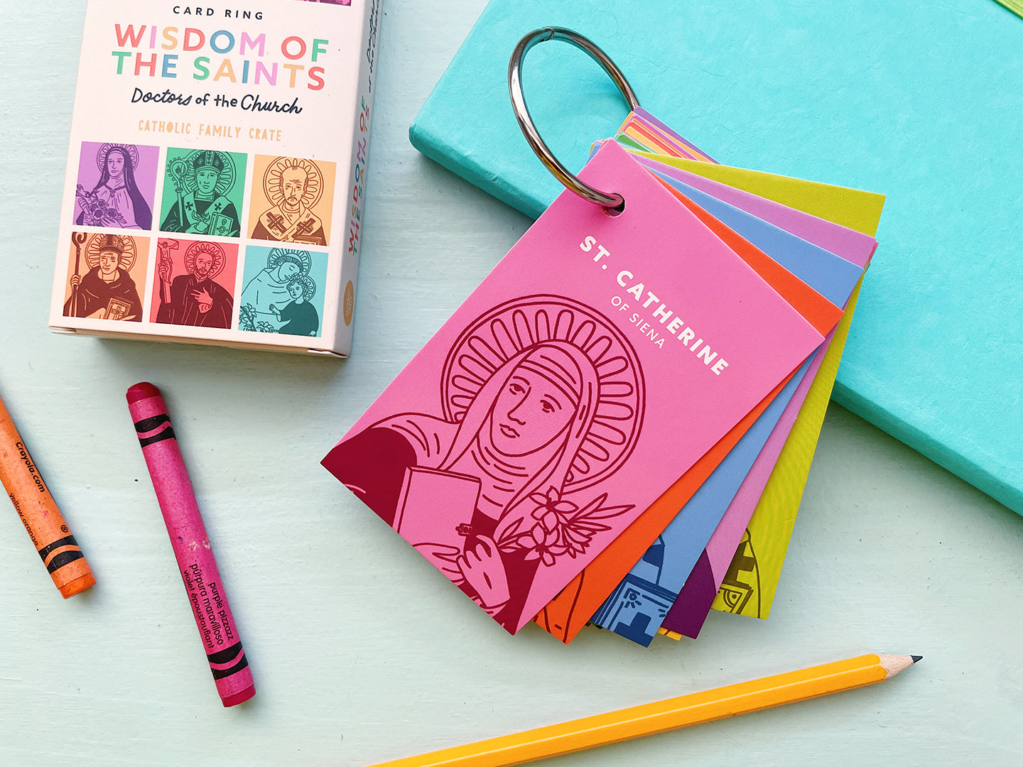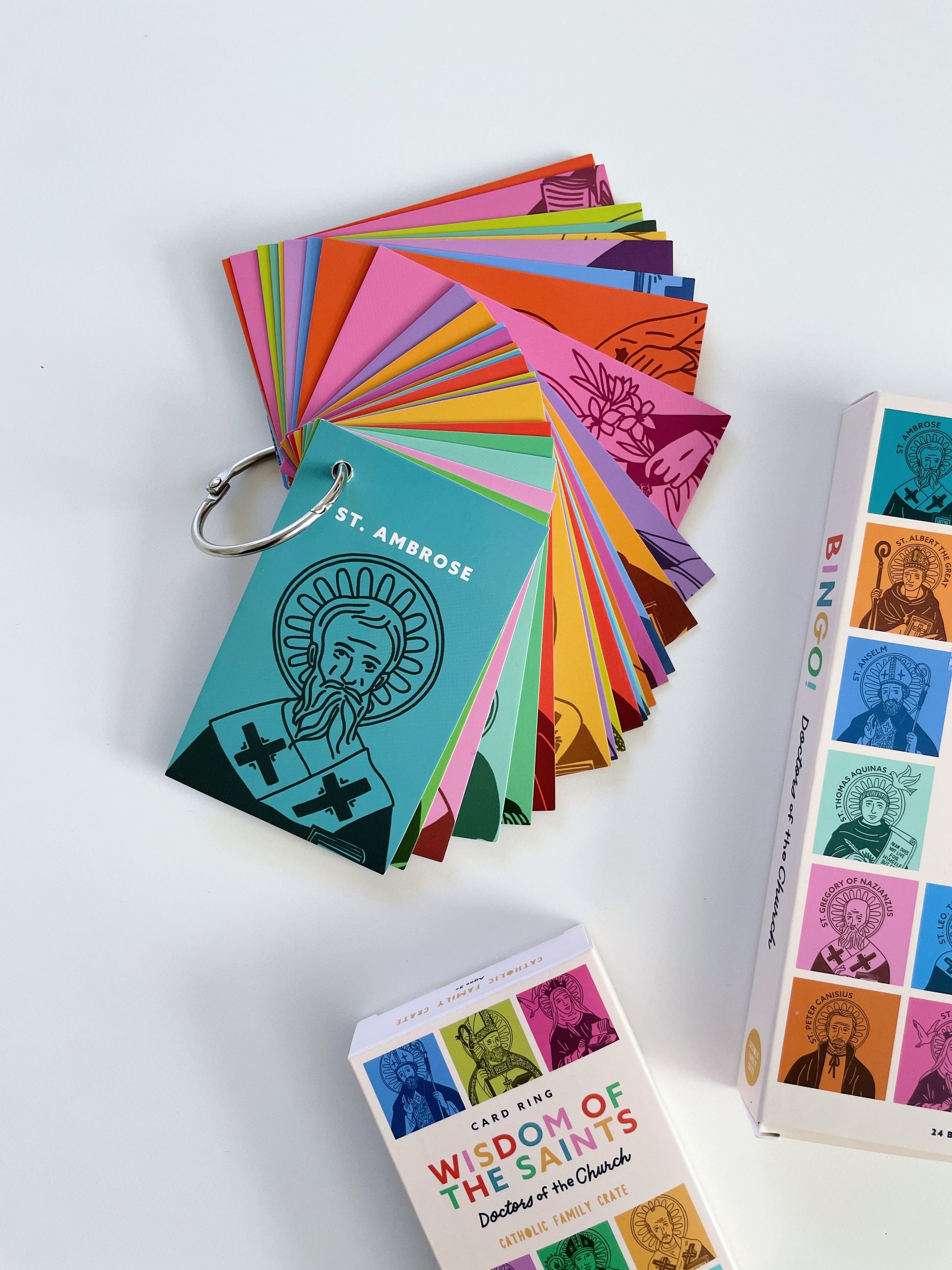 Unlock the profound insights of the Church’s greatest thinkers with our Wisdom of the Saints Ring. This engaging and educational set features 27 cards dedicated to the Doctors of the Church, each adorned with colorful illustrations, fascinating facts, and child-friendly quotes from these revered saints.